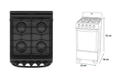 $6,194.00Estufa de color Negro de 50 cm. Perfect Cook para mejor distribución de calor. Con 4 quemadores estándar, ventana panorámica y 2 parrillas de alambrón.