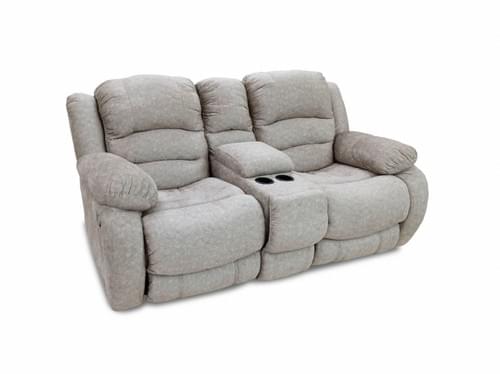 Confortable love seat tapizado en tela color arena, 2 reclinables y porta vasos